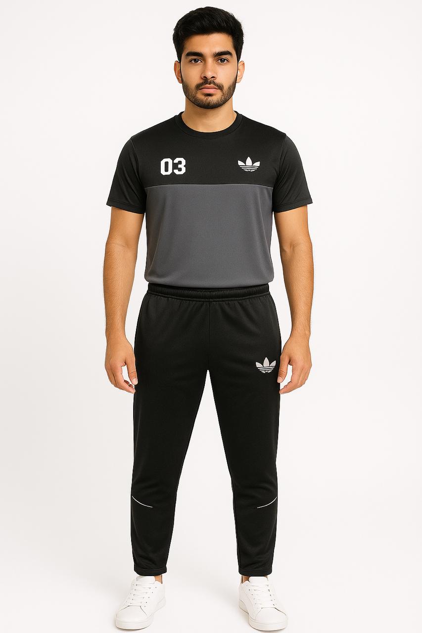 Embrace comfort and style with the Adidas Premium Track Suit, featuring a sleek half-sleeve t-shirt and regular-fit trousers. Perfect for both active wear and casual outings, this track suit offers versatility and all-day comfort.