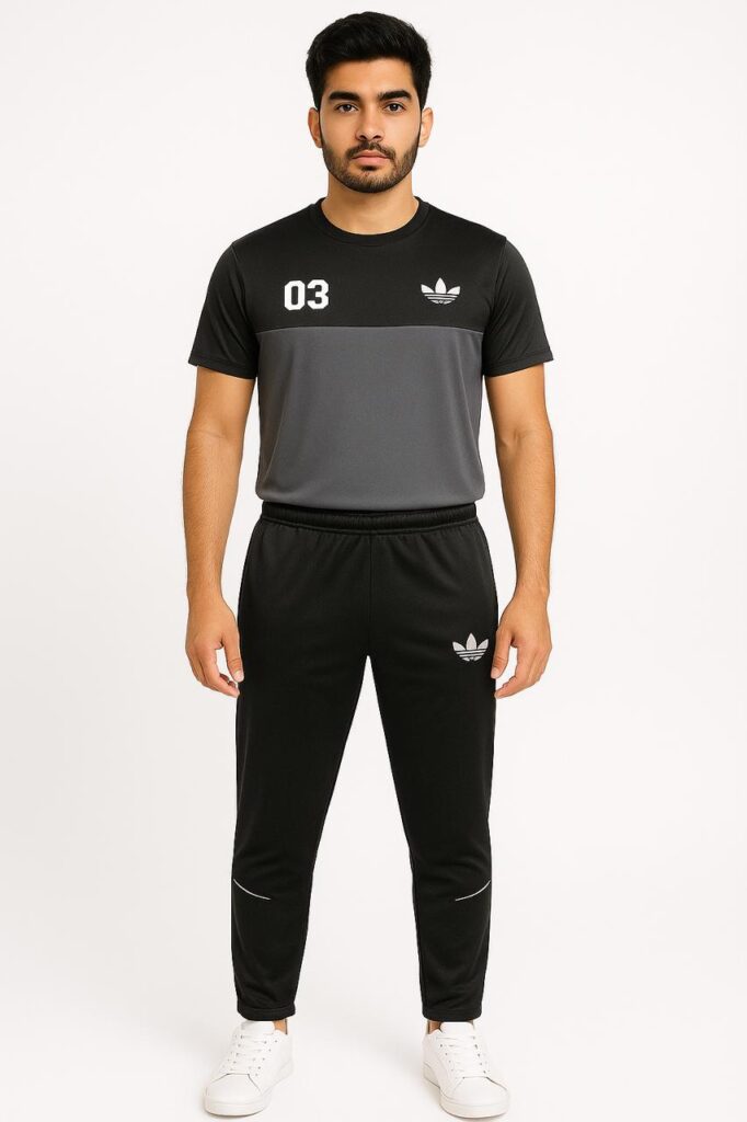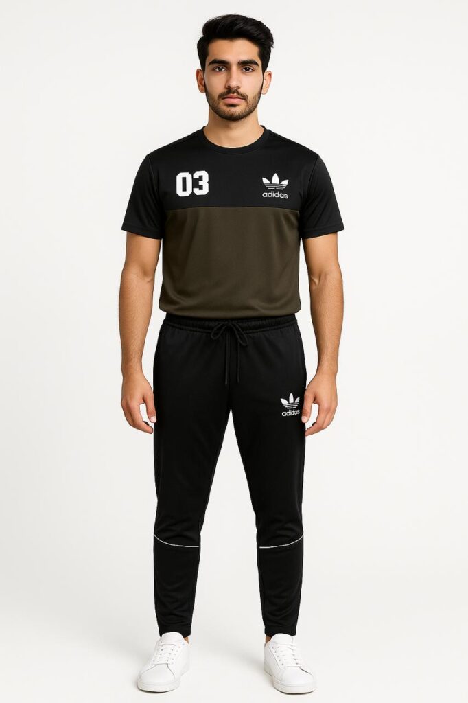 Crafted from breathable, high-quality fabric, the set includes a half-sleeve t-shirt and regular-fit trousers, offering a relaxed yet modern silhouette. The stretchable material allows full range of motion, while the Adidas logo adds a sporty touch that’s perfect for any casual or active setting.