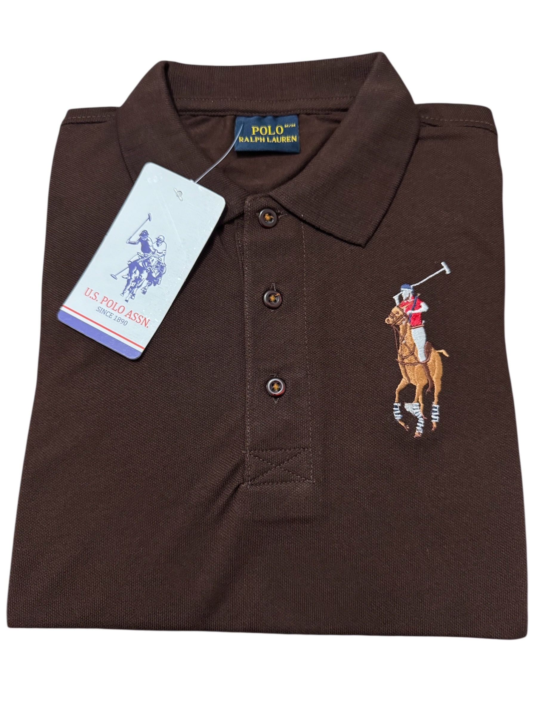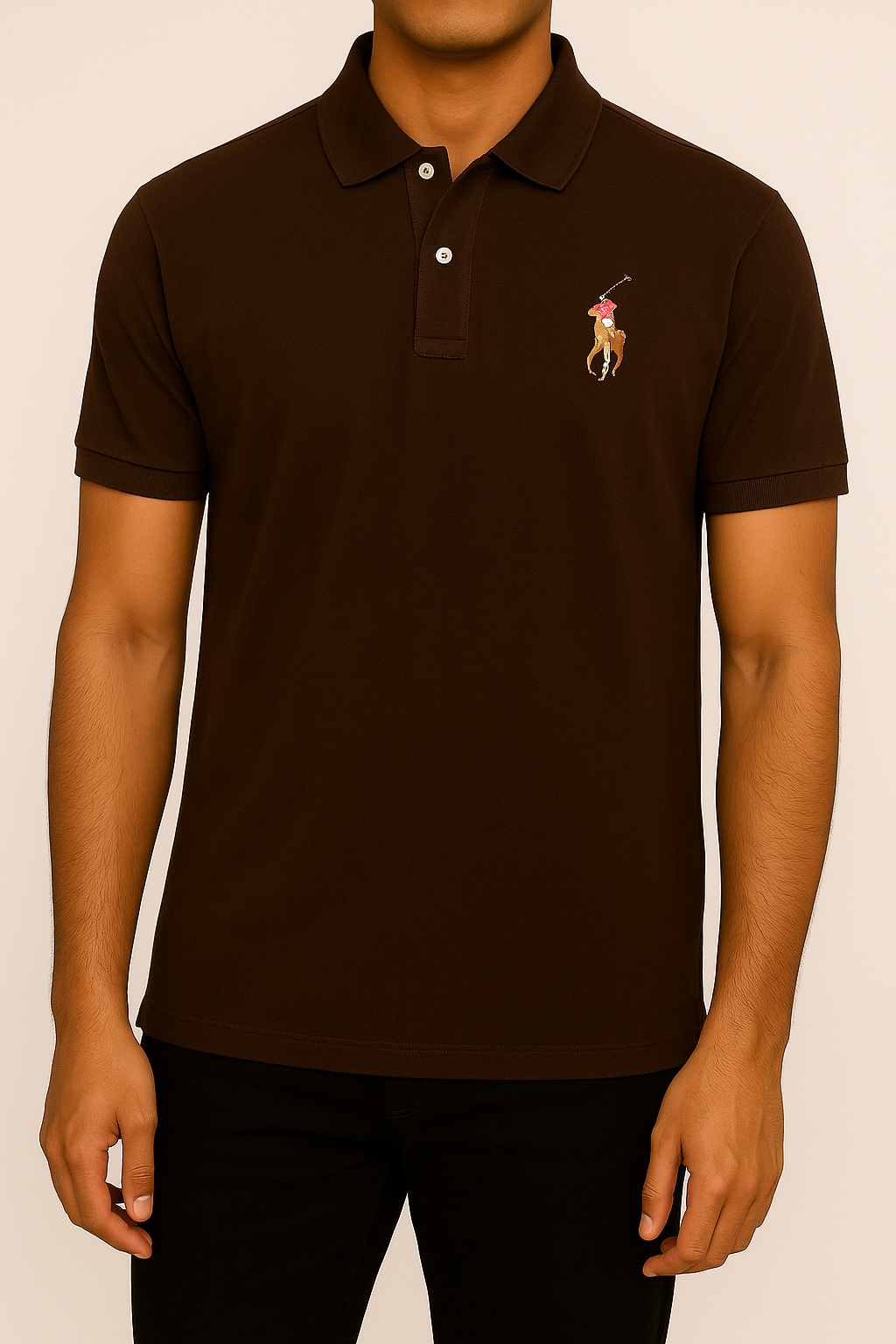Dark Brown Plain Pique Polo Shirt Embroidered Logo