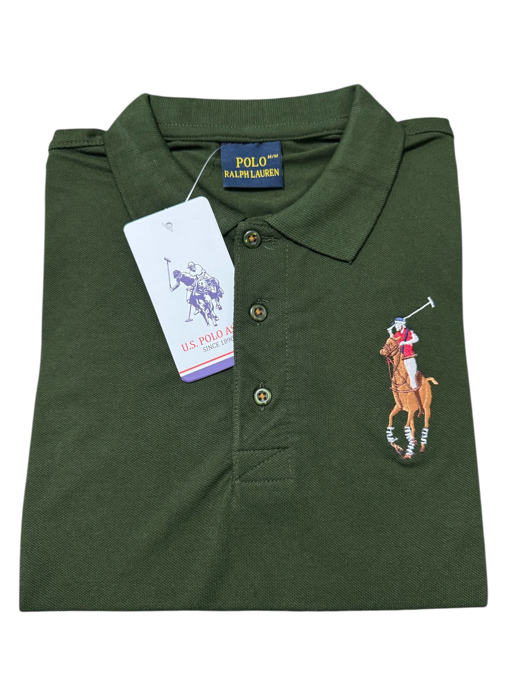 Dark Green Plain Pique Polo Shirt Embroidered Logo