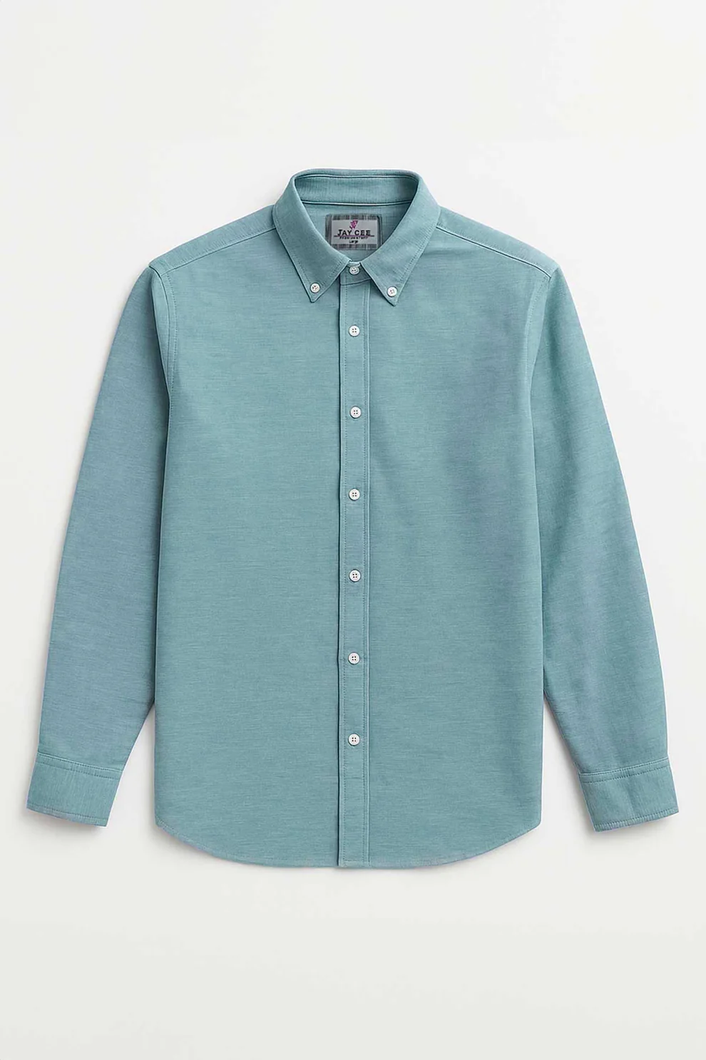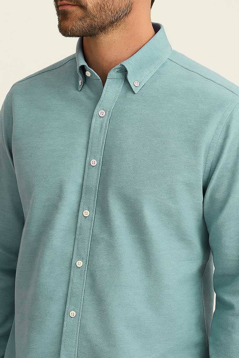 Men’s 100% Cotton Torquise Textured Oxford Button-Down Shirt